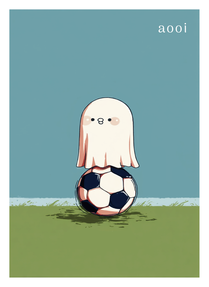 サッカーの練習をしているオバケの子供のイラストのカードスリーブです。
